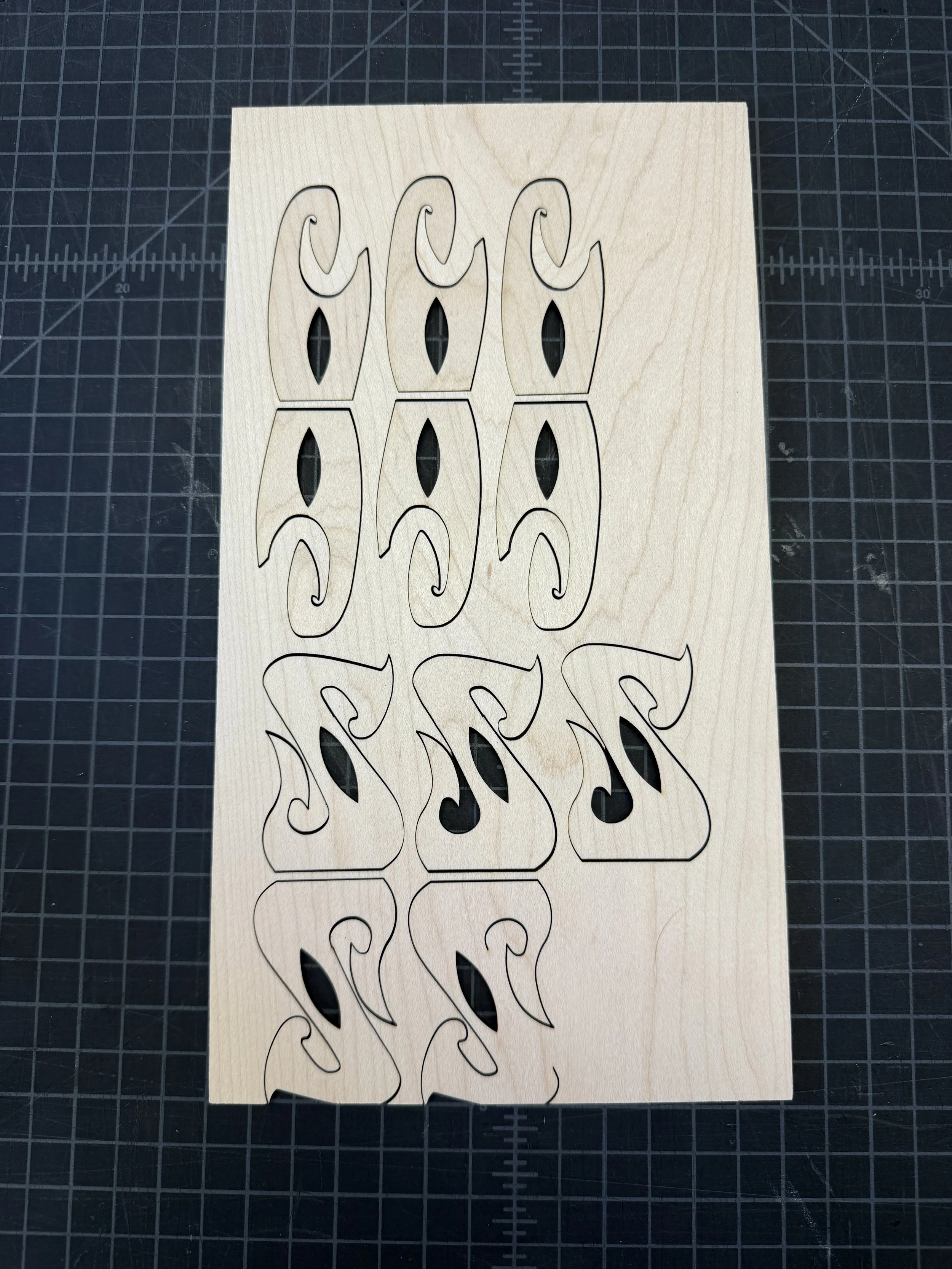 Used a laser cutter to cut shapes from 1/4” hardwood panels