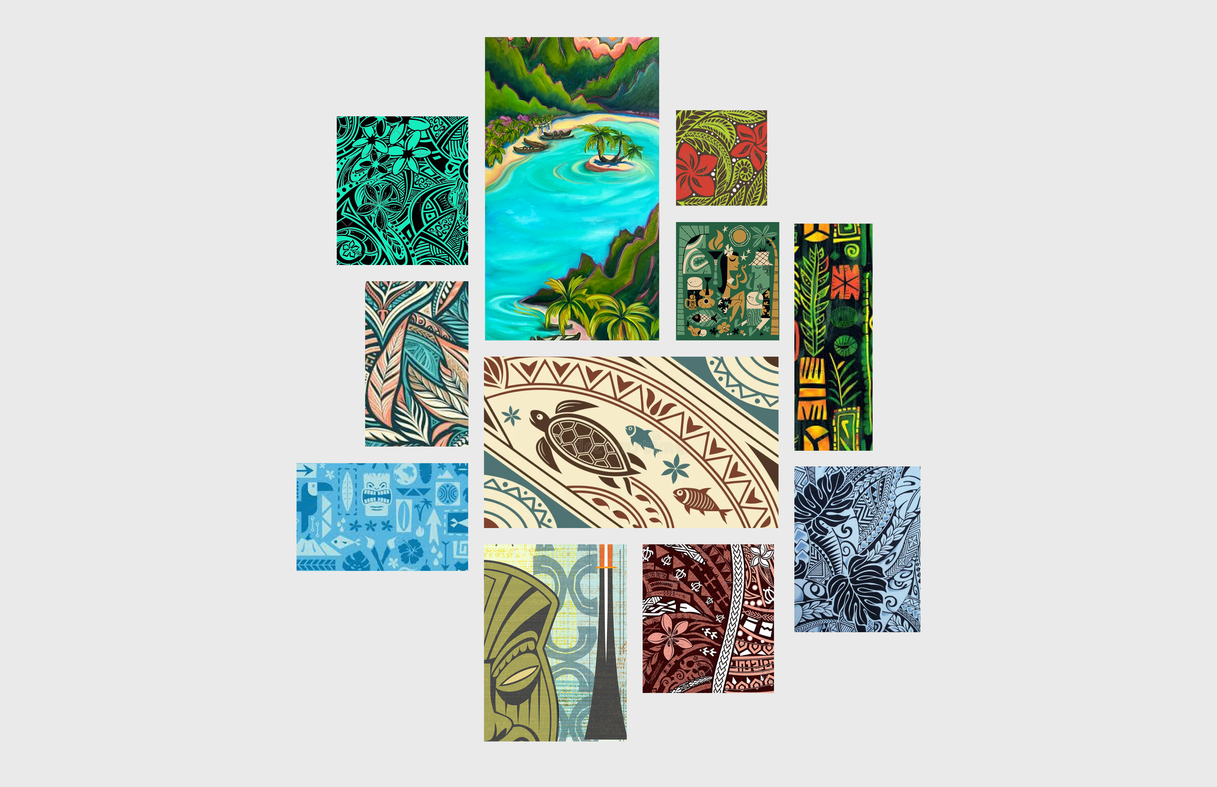 I thought the Tiki set had the most potential but due to project constraints and iconography I could not continue with the tiki set and had to switch my approach to a more cultural inspired set.